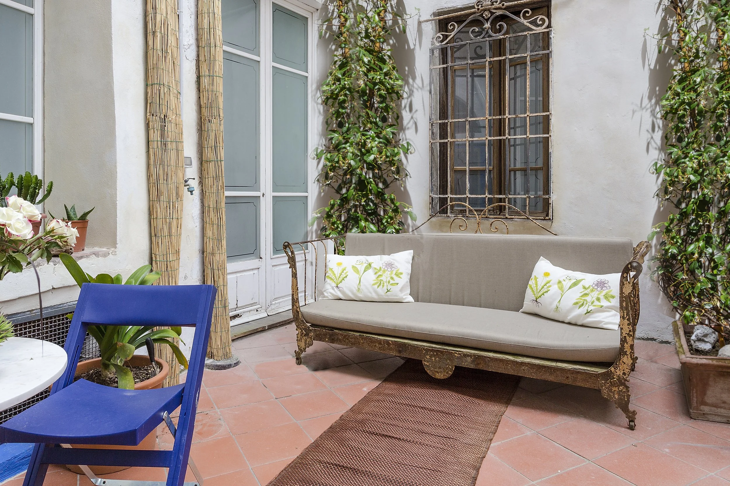 L’arredamento è misto, con pezzi vintage e nuovi, assemblati.