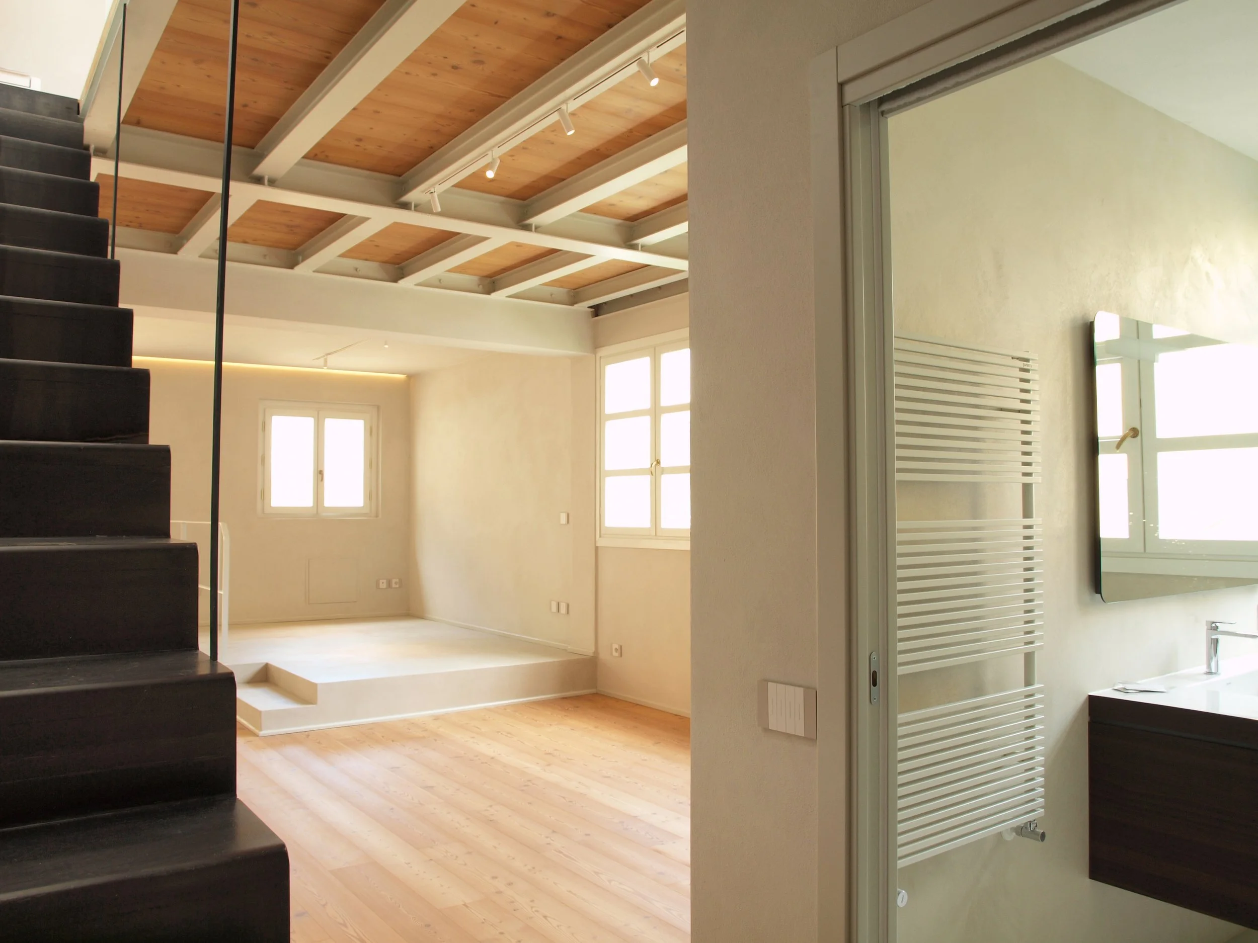 Già negli anni ‘70 questo manufatto era stato trasformato in appartamento purtroppo con molte divisioni interne. Con l’attuale proprietario fin da subito sono state ricercate le peculiarità del fabbricato e la possibilità di sfruttare l’ordito costruttivo a favore di ampi spazi. L’appartamento si sviluppa su 3 livelli, corredato da due terrazze e un bellissimo e raro tetto verde.